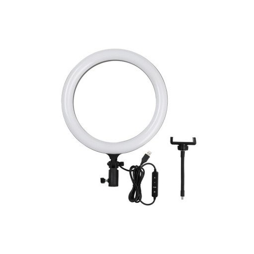 30 CM Ring Light is a portable and efficient lighting accessory perfect for makeup, photography, online meetings, and video content creation. It provides soft, even lighting with adjustable brightness and color temperature. Lightweight and easy to set up, it includes a stable stand and phone holder for added convenience.